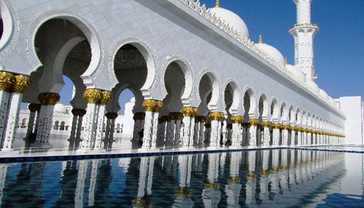 La mezquita Sheikh Zayed, conocida popularmente como Gran Mezquita de Abu Dabi, recibe el nombre en honor al primer presidente de los Emiratos Árabes Unidos, Sheikh Zayed bin Sultán Al Nahyan, quien inició la construcción de la mezquita en 1990 aunque no la vió finalizada, dado que fue inaugurada en el año 2007 tres años después de su fallecimiento Él quería establecer una estructura que uniera la diversidad cultural del mundo islámico, los valores históricos y modernos de la arquitectura y el arte. Su última morada se encuentra en los jardines junto a la misma mezquita. Es la mezquita más grande de los Emiratos Árabes Unidos y la octava mezquita más grande del mundo.